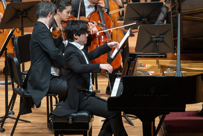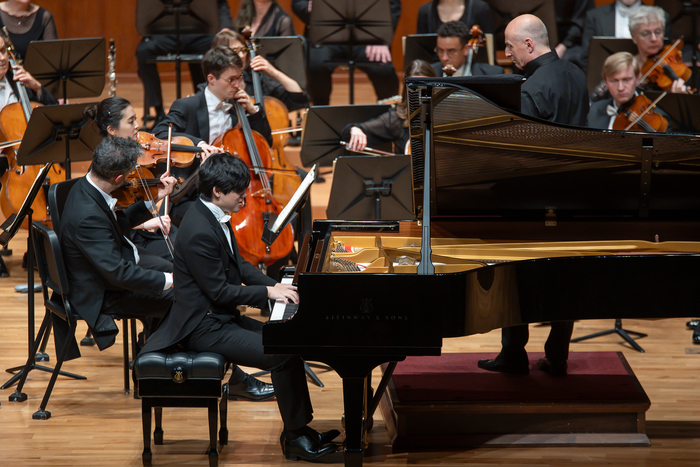 지난 18일 서울 예술의전당 콘서트홀에서 파보 예르비가 지휘하는 도이치 캄머필하모닉과 쇼팽 피아노 협주곡 2번을 연주하고 있는 피아니스트 임윤찬. 사진제공=빈체로