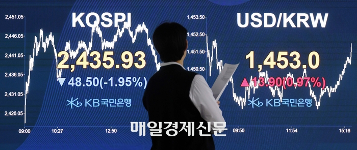 19일 서울 여의도 KB국민은행 딜링룸에 주가지수와 원달러 환율 가격이 표시되고있다. 2024.12.9 [김호영기자]