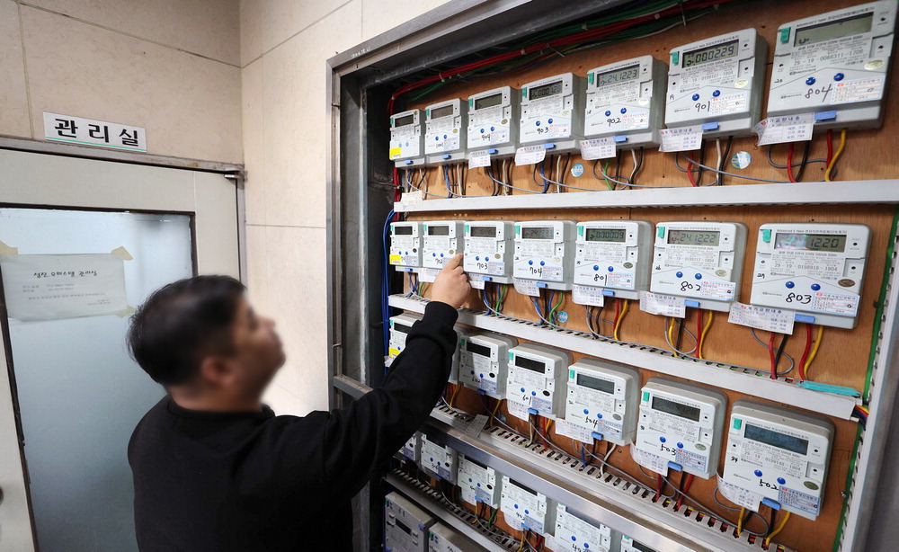 "전기 얼마나 썼지" 23일 서울 한 다세대주택에서 관리인이 전기 계량기를 살펴보고 있다. 이날 한국전력이 내년 1분기 전기요금 중 연료비조정단가를 동결하기로 한 가운데 물가 불안과 정국 혼란을 감안하면 내년에도 주택용 전기요금이 동결될 것으로 전망된다. 이충우 기자