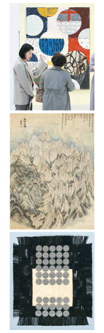 2024년 열린 '아트오앤오' 아트페어. 정선 '금강전도'. 박래현 '작품',이건희컬렉션(위쪽부터). 김호영 기자·호암미술관·국립현대미술관