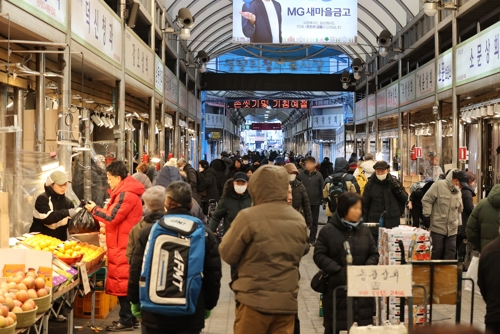 10일 서울 동대문구 청량리시장에서 시민들이 장을 보고 있다. [사진 출처 = 연합뉴스] 물가 상승과 기후변화 등으로 올해 설 차례상을 차리는 데 평균 30만2000원이 들 것이라는 조사 결과가 나왔다.