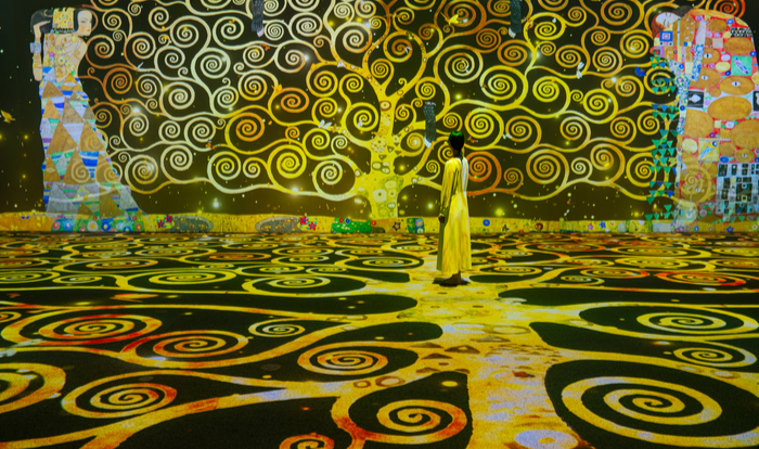 그라운드 시소 명동에서 진행 중인 미디어아트 전시 ‘구스타프 클림트: 타임리스 뷰티’ 전경. 미디어앤아트 ① 그라운드시소 명동 : 움직이는 클림트