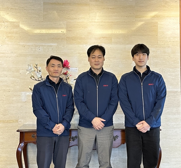 왼쪽부터 에스엠티 최현석 연구소장,노치승 이사,이종희 전임연구원. 에스엠티의 ‘열·전기전도성 복합 개스킷’