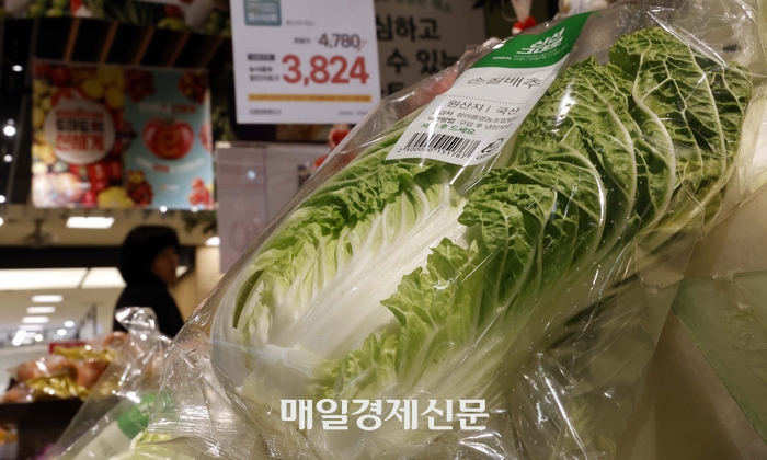 12일 서울의 한 대형마트에서 배추가 판매되고있다.