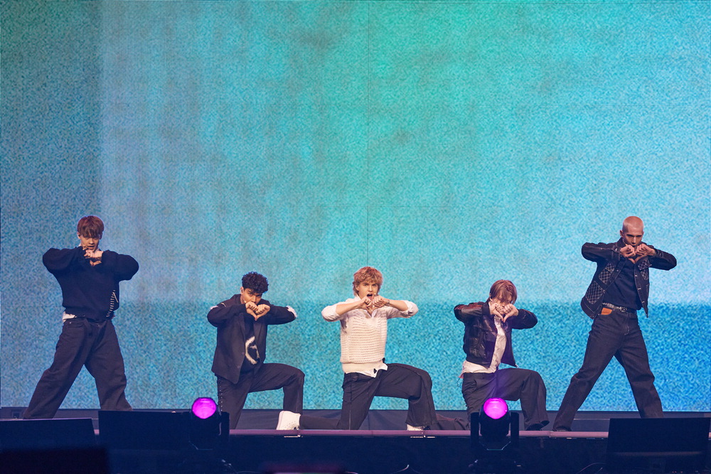 창립 30주년 기념 'SM타운 라이브 2025' 무대에 오른 영국인 5인조 보이그룹 디어앨리스. SM엔터테인먼트