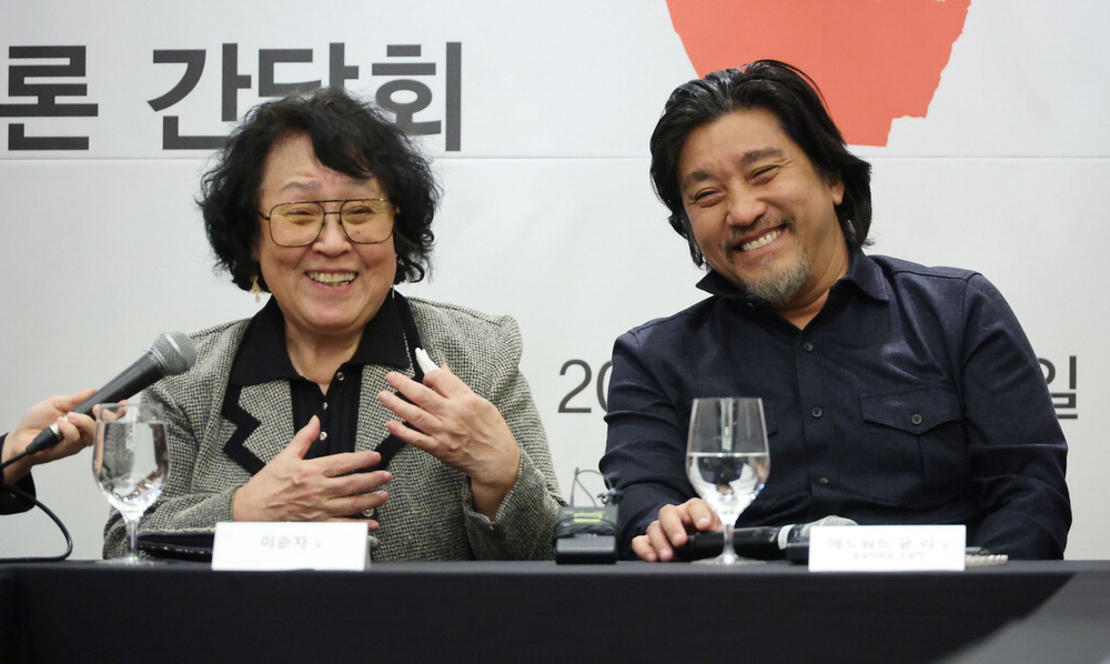 한국계 미국인 셰프 에드워드 리(오른쪽)와 어머니 이순자 여사. 이승환 기자