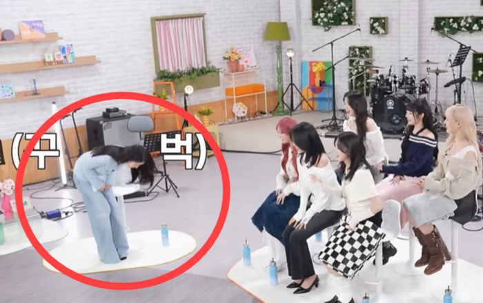 13년 차 후배 아이브에게 90도 사과하는 아이유. [사진출처 = 영상캡처] 가수 아이유가 13년 후배인 걸그룹 아이브에게 90도 허리 숙여 사과해 그 배경에 관심이 쏠렸다.