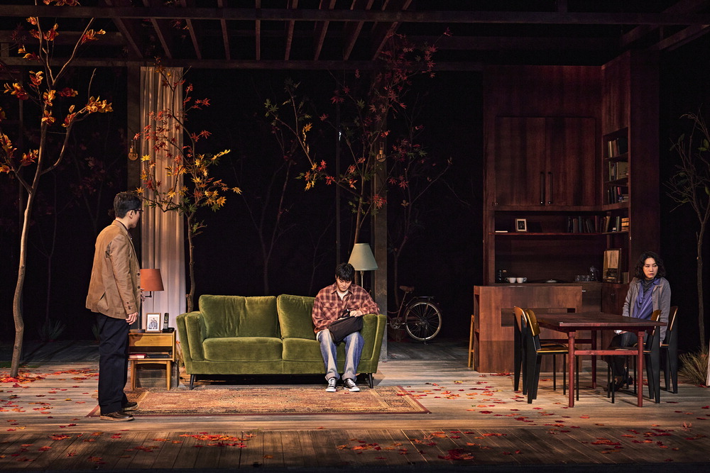 '붉은 낙엽'은 무대미술이 아름다운 연극이다. 무대에는 여러 그루의 나무가 서 있고 자택 안에도 줄기가 돋아나 가지가 천장을 뚫고 뻗어 있다. 나무에 가득한 붉은 잎사귀들은 에릭 일가에 잠재한 비극을 선명하게 나타내는 것으로 느껴진다. 연극이 진행되면서 잎사귀들은 낙엽으로 떨어지고 저택 안팎의 무대에 쌓이며 스산하고 불길한 느낌을 더한다. 3월 1일까지 공연.