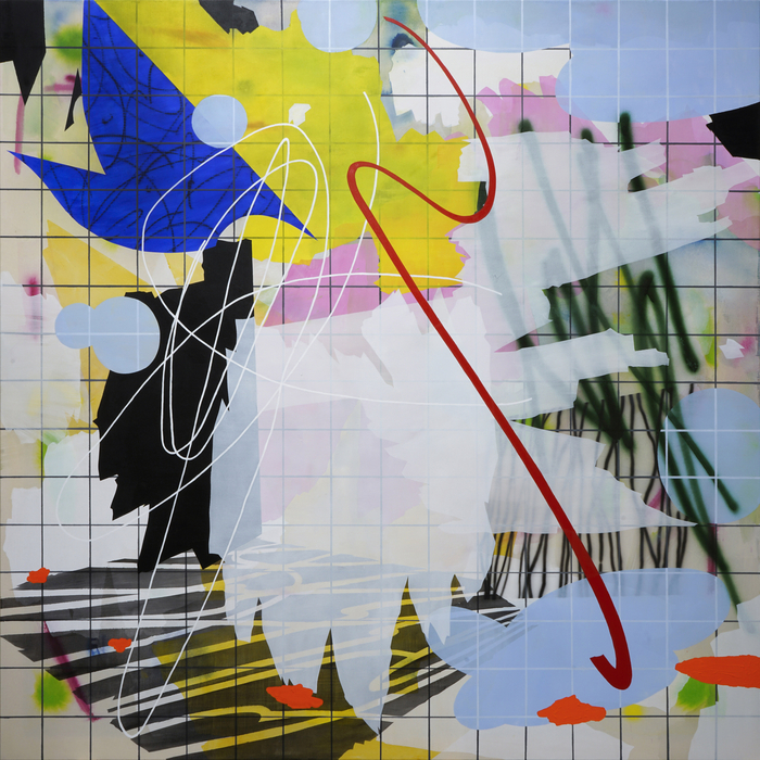 이영준의 작품세계에서 차곡차곡 쌓아올리는 레이어는 중요하다. 그는 레이어의 중첩 속에서 시간의 흐름을 뒤섞어 버린다. 이번 전시의 작품은 모두 정사각형의 평면 회화인데 작가는 움직임에 대한 ‘시작과 끝’ ‘위와 아래’와 같은 시공간에 혼선을 의도적으로 줬다. 정사각형의 균질함 속에서 사방으로 자유로운 방향전환은 회화적 공간 속에 시선이 오래도록 머무르게끔 한다. 작가는 대칭과 긴장,어긋남 속에서 균형을 맞춰 나가는 과정 자체를 회화의 본질로 본다.