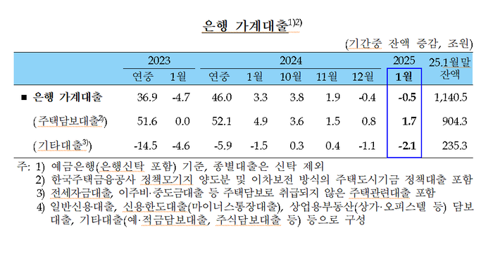 “주택담보대출 증가 폭 크지 않네”…1월 은행 가계대출 감소