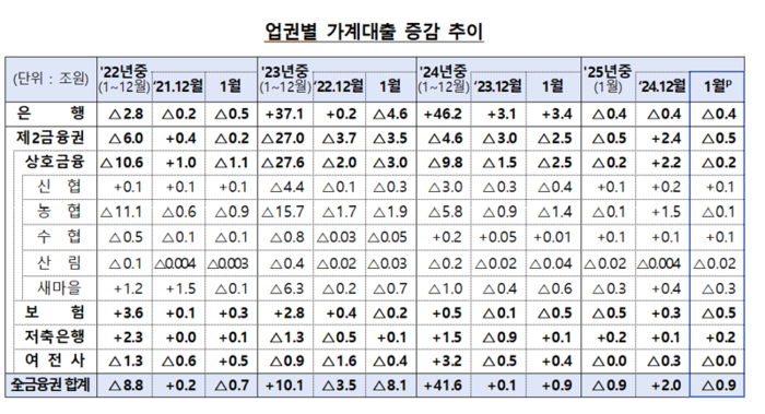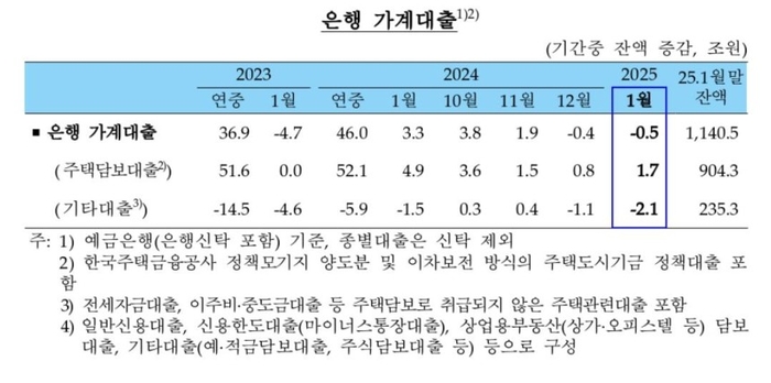 이와 함께 신용대출 등의 기타 대출도 한 달 전보다 4조 2000억원 감소해 지난해 12월(1조 4000억원 감소) 보다 감소 폭이 확대됐다.