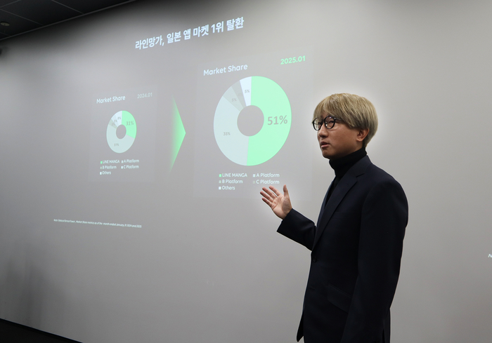네이버웹툰의 일본 서비스인 라인망가는 지난해 4분기 일본 양대 앱 마켓에서 비게임 매출 1위에 오르는 등 선두로 치고 나가기 시작했다. 시장조사업체 센서타워에 따르면 올해 1월 라인망가의 웹툰 시장 점유율은 51%로 집계됐다.