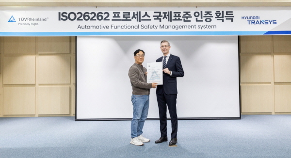 이날 현대트랜시스는 글로벌 시험 인증기관 ‘티유브이 라인라드로’부터 자동차 기능안전 국제표준인 ‘ISO 26262 기능안전관리(FSM)’ 인증을 획득했다고 밝혔다. ISO 26262는 자동차 부품 고장으로 인한 사고를 방지하기 위해 국제표준화기구(ISO)가 2011년 제정한 안전 국제표준이다.