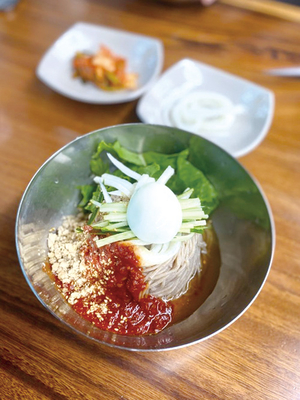 50년 전통 ‘북촌손만두’의 인기 메뉴는 피냉면이다. 빨간 다대기를 풀어 먹는 시원하고 매콤한 물냉면은 이곳의 대표 메뉴인 전통 손만두를 두 배,세 배 더 맛있게 해주는 비장의 메뉴. 그중 최고의 조합으로 꼽히는 튀김만두는 큼지막한 사이즈와 바삭한 겉바속촉의 육즙이 매콤한 피냉면과 너무나 잘 어울린다. 담백한 것을 좋아한다면 만두피 없이 전분에 굴려 고기 완자 같이 담백하고 부드러운 굴림 만두를 추천한다.[글과 사진 최유진][본 기사는 매일경제 Citylife 제965호 기사입니다]