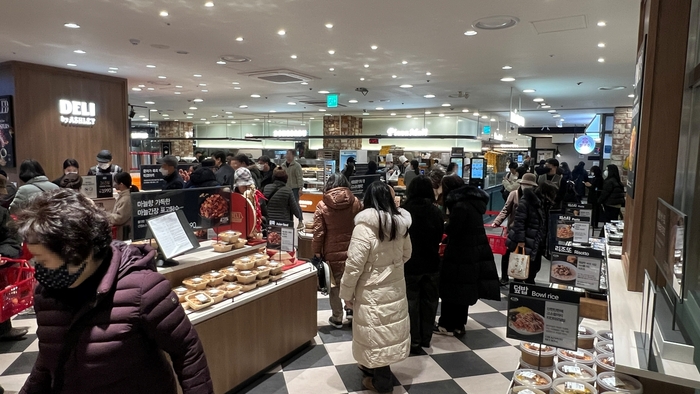 ‘델리 바이 애슐리’ 7호점 평촌점. [사진 출처 = 이랜드킴스클럼] 이랜드킴스클럽 관계자는 ”델리 바이 애슐리는 압도적인 가짓수의 미식 메뉴를 3990원이라는 합리적인 가격으로 선보이며 대형마트 즉석조리식품의 새로운 모델을 만들었다“며 ”올해도 10여개 판매점을 추가 오픈해 더 많은 고객에게 다가갈 계획“이라고 말했다.