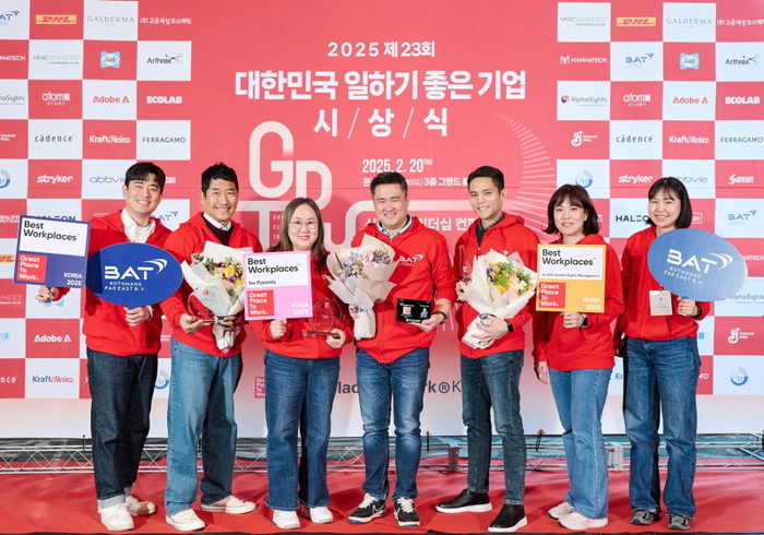 BAT로스만스가 글로벌 기업문화 조사기관 GPTW(Great Place To Work)가 주관하는 ‘2025 대한민국 일하기 좋은 기업 시상식’에서 3년 연속 7관왕을 달성했다. [사진제공=BAT로스만스] 직원들의 만족과 행복을 경영의 최우선 가치로 삼는 BAT로스만스가 또다시 일냈다.