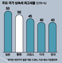 전문가들도 상속세율 완화를 주문하고 나섰다. 심충진 건국대 경영학과 교수는 “기업가치가 오를수록 상속이나 증여 때 내야 할 세금이 늘어난다”며 “이 때문에 오히려 기업가치를 낮추고,주가 상승을 억제하는 요인이 된다”고 지적했다. 과도한 상속세가 고질적인 ‘코리아 디스카운트’의 중대한 원인이라는 얘기다.