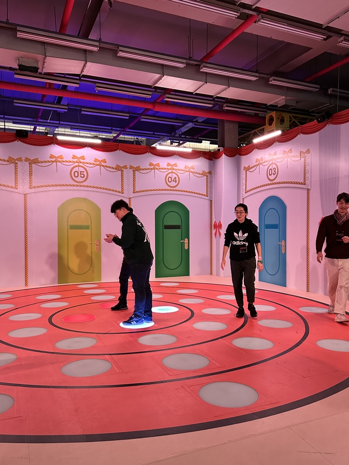 징검다리 건너기 게임 / 사진=권효정 여행+ 기자 방문객은 드라마 속 게임뿐 아니라 먹거리,인증샷 명소,공식 상품까지 한곳에서 즐길 수 있다. 이 체험관은 2023년 12월 LA에서 첫선을 보인 ‘스퀴드 게임: 더 트라이얼’에 이어 지난해 뉴욕,마드리드,시드니 등 세계 각지에서 큰 인기를 끌었다. 서울에서는 오는 28일 문을 연다.
