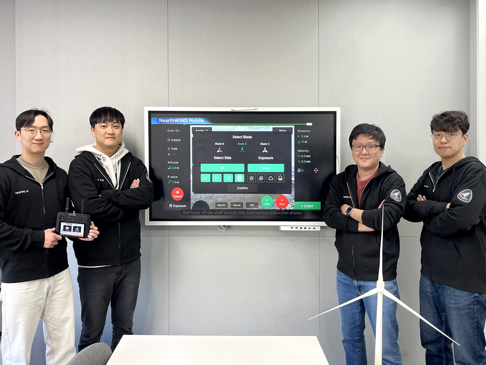 소형 드론만 있으면 누구나 손쉽게 풍력발전기를 점검할 수 있는 기술이 나왔다. 드론 제조 업체 니어스랩이 개발한 드론 자율비행 소프트웨어가 2025년도 9주 차 IR52 장영실상 수상 제품으로 선정됐다. '니어스윈드모바일'은 상용 드론을 조정해 풍력발전기를 점검할 수 있는 모바일 애플리케이션이다. 소형 상용 드론과 이 애플리케이션이 설치된 모바일 기기만 있으면 비싸고 무거운 산업용 드론 없이도 설비를 점검할 수 있다.