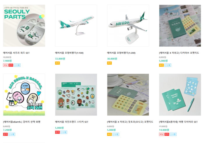 에어서울은 자사 브랜드를 친근하게 알리기 위해 제작한 로고를 활용한 다양한 제품을 ‘에어서울 기프트#’에서 판매하고 있다.