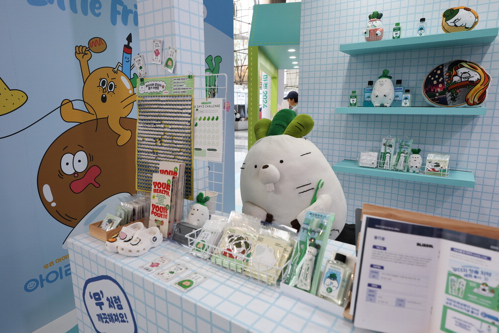 서울역에 있는 스토리웨이 편의점에는 귀여운 무 캐릭터 '무더지'를 내세운 가글과 칫솔치약세트를 판매하고 있다. 무심코 지나칠 수 있지만 이 기획상품은 무더지 IP(지식재산권)를 보유한 중소 콘텐츠 기업 블리쏠과 코레일유통 간 협업 사례다.