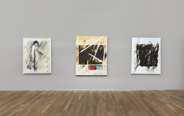 김병기 화백의 작품들. 왼쪽부터 2018년작 ‘역삼각형의 내부’(145.5X112.1cm),2018년작 ‘메타포’(Metaphor,162.2X130.3cm),2014년작 ‘사각형’(152X122cm). [가나아트센터] 이 추모전을 이해하려면 우선 1965년으로 시계추를 잠시 돌려야 한다.