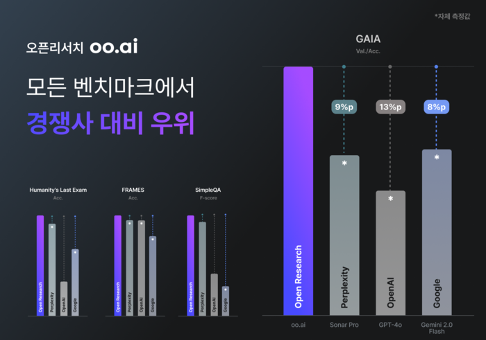 특히 oo.ai는 퍼플렉시티의 유료 프로 기능과 비교해 모든 성능 지표에서 우위를 점했다고 회사측은 설명했다.