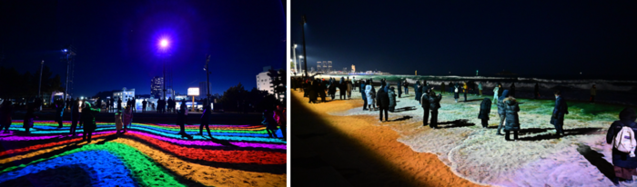 속초해변 / 사진=한국관광공사 홈페이지,속초해변 미디어아트 ‘빛의바다,속초’ / 사진=속초시