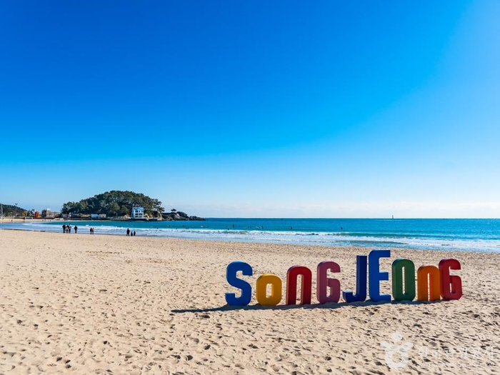 속초해변은 수심이 얕고 바닷물이 맑아 1년 내내 방문객으로 붐빈다. 특히 올해 1월부터는 전국 최초이자 최대 규모로 해변 모래톱 야간 미디어아트를 선보이고 있다.‘빛의바다,속초(Sokcho)’라는 작품으로 가로 70m,세로 15m 규모의 대형 미디어아트다. 매주 금요일과 토요일에 운영하며 10월~4월까지 동절기에는 오후 6시부터 오후 8시까지,5월~9월까지 하절기에는 오후 8시부터 오후 10시까지 송출한다. 매시 정각마다 30분씩 진행해 2시간 동안 미디어아트를 총 2회 송출한다.