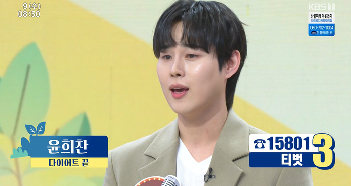 ‘아침마당’에 출연한 윤희찬. 사진| KBS1 방송화면 캡처 가수 윤희찬이 아이돌 연습생 시절 소속사가 강요한 혹독한 다이어트에 대해 폭로했다.