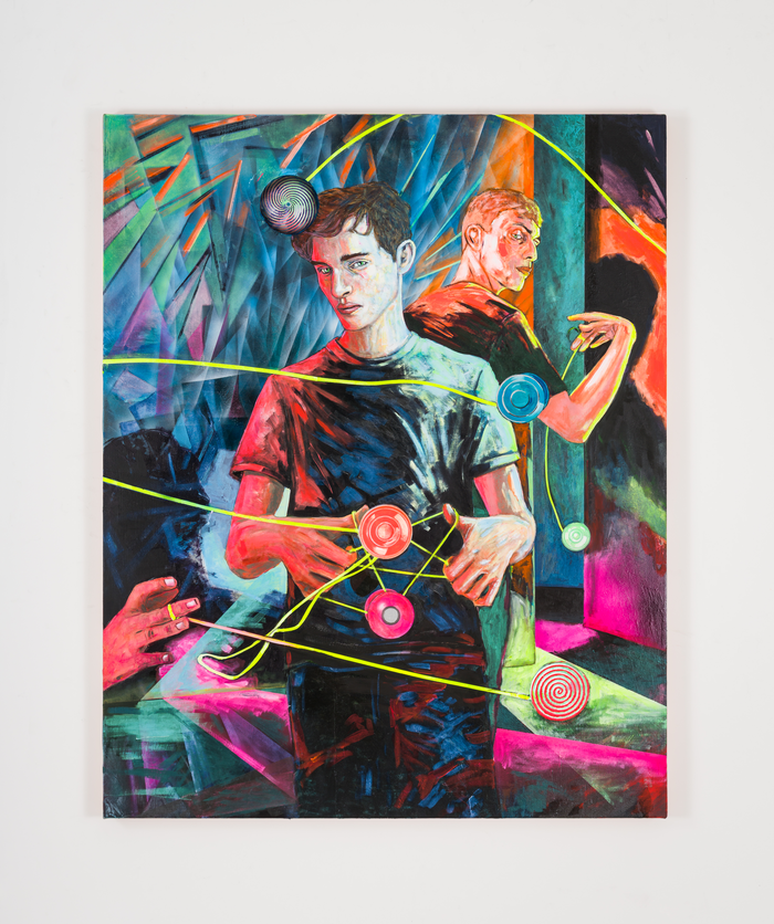 헤르난 바스 ‘라운드 원,요요 세계대회’(2025). 리만머핀 ‘라운드 원,요요 세계대회’는 요요를 소재로 했다. 요요 선수가 화려한 조명을 배경으로 형광색 줄의 요요 묘기를 선보이고 있다. 바스는 “요즘 요요에 매료돼 있다. 사람들은 잘 모르지만 요요 세계대회와 요요 선수들이 실제로 존재한다. 요요 역시 필요와 불필요 사이에 놓여있다”고 말했다.