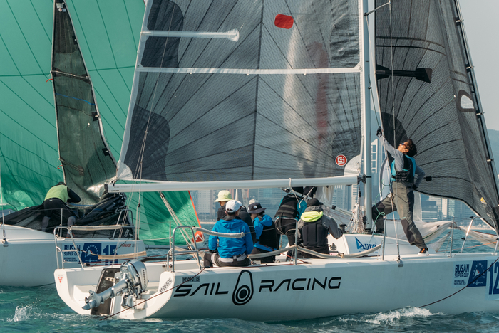 지난해 부산 수영만 해상에서 열린 부산슈퍼컵 국제요트대회에서 선수들이 요트를 조정하고 있다. [부산시요트협회]