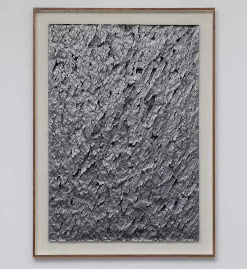 '무제 0211024'는 세로 120㎝,가로 80㎝ 남짓한 검은 신문지,아니 검은 캔버스다.