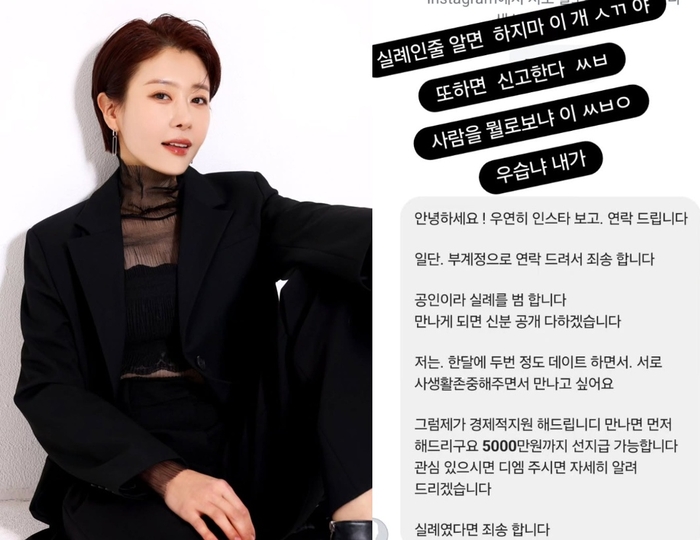 전세현이 받은 DM에는 “공인이라 실례를 범합니다. 만나게 되면 신분 공개 다 하겠다. 한 달에 두 번 정도 데이트하면서 서로 사생활 존중해주면서 만나고 싶다. 그럼 제가 경제적 지원해드린다. 만나면 먼저 해드린다. 5000만 원까지 선지급 가능하다. 관심 있으시면 DM 주시면 자세히 알려드리겠다. 실례였다면 죄송한다”는 내용이 담겼다.