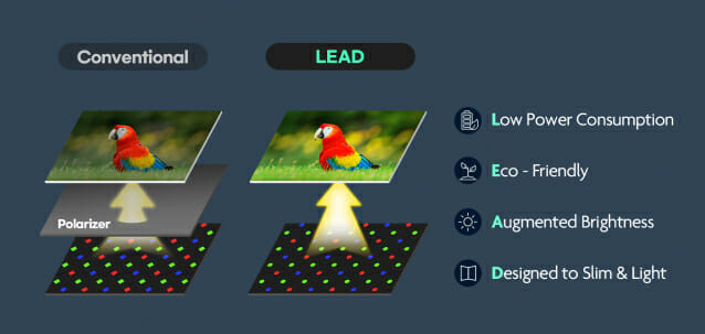 삼성디스플레이는 저전력,친환경,고휘도,얇은 두께 등 4가지 대표 특성을 내포한 ‘LEADTM’ 브랜드를 통해 시장에서 독자 기술임을 적극 알리고 있다.