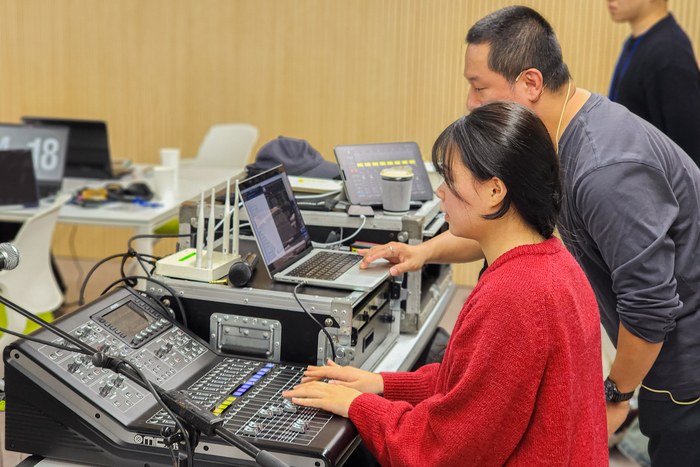 국립아시아문화전당(ACC) 전문인 교육 프로그램의 ‘직군 탐색’ 트랙에 참여한 한 수강생이 사운드 엔지니어 교육을 받고 있다. ACC