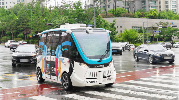수원시 영통구 광교지구 중심지를 시험 운행 중인 자율주행 차량. <사진=수원시>