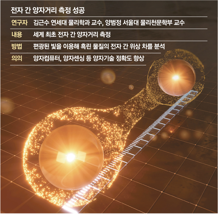김근수 연세대 물리학과 교수와 양범정 서울대 물리천문학부 교수 공동연구팀은 세계 최초로 고체 물질 속 전자의 양자거리를 측정했다는 내용의 논문을 6일 국제학술지 사이언스에 게재했다.