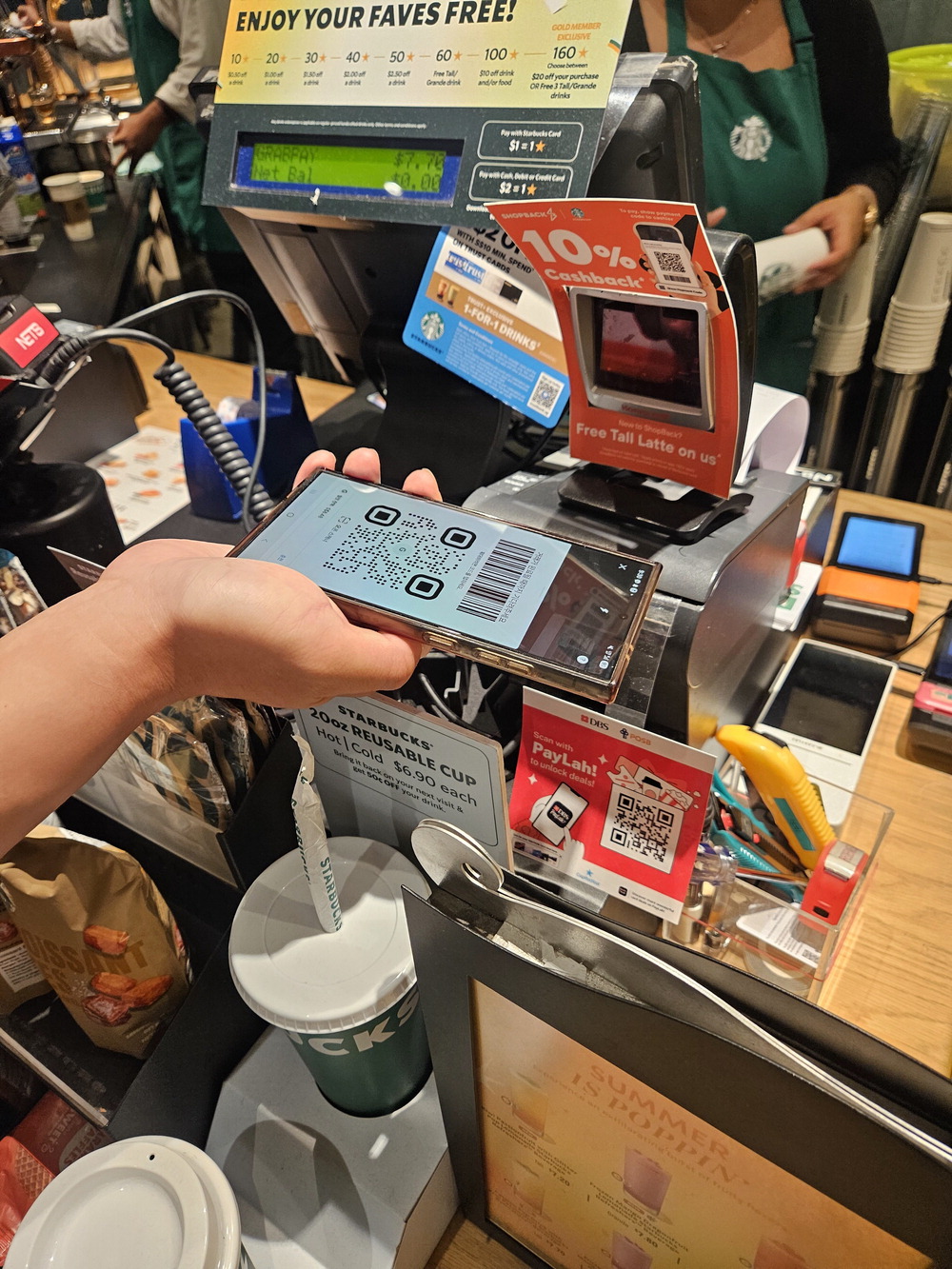 11일 싱가포르 한 카페에서 기자가 그랩을 이용한 결제를 하고 있다. QR코드를 띄우고 단말기에 가져다 대면 금방 결제가 완료된다. 스테이블코인 결제가 가능하다는 특별한 안내가 있지는 않다. QR코드 결제만 가능하면 가상자산 결제를 할 수 있기 때문이다.