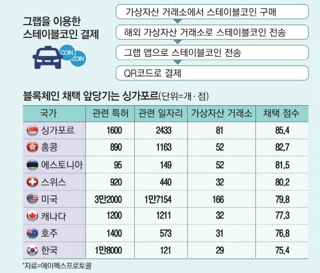 그랩은 지난해 3월 싱가포르를 중심으로 비트코인,이더리움,테더,USDC에 싱가포르달러와 연계된 스테이블코인 'XSGD'까지 5개 가상자산 기반 결제 시스템을 구축했다. 그랩은 싱가포르에서 택시를 이용하거나 배달 음식을 먹는 등 여행에 필요한 대부분의 상황에서 이용되는 앱이기에 가상자산,특히 스테이블코인을 갖고 있다면 모든 게 다 가능한 셈이다.