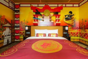 레고 닌자고 콘셉트 객실 / 사진=레고랜드 홈페이지 두 번째 혜택은 춘천 여행 매력을 더한 레고랜드 호텔의 ‘춘천 디스커버리 패키지’다. 이 패키지는 테마파크 전망 객실 1박과 풍성한 조식 뷔페,춘천 삼악산 호수 케이블카 크리스탈 캐빈 탑승권 3매로 구성했다. 호텔 객실 뿐만 아니라 외부 관광코스에서도 아름다운 춘천의 경관을 만끽할 수 있다. 어린이는 최대 3인까지 추가 비용 없이 숙박할 수 있다.