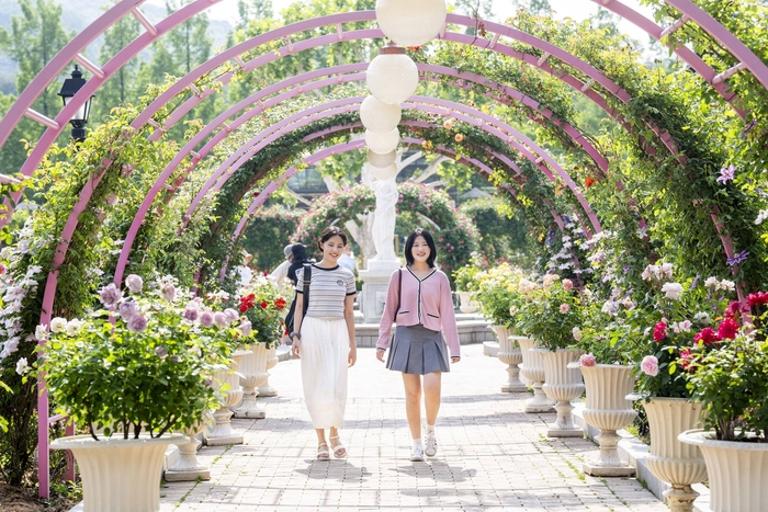 에버랜드 로로티 장미축제가 한창인 로즈가든 / 사진=삼성물산 에버랜드는 올해 장미축제에서 다리아송·갑빠오·부원 등 유명 작가 및 브랜드와 협업했다. 이야기,조형물,기획상품 등 축제 전반에 걸쳐 고객이 장미의 아름다움을 더 다양한 분야에서 느낄 수 있도록 기획했다.