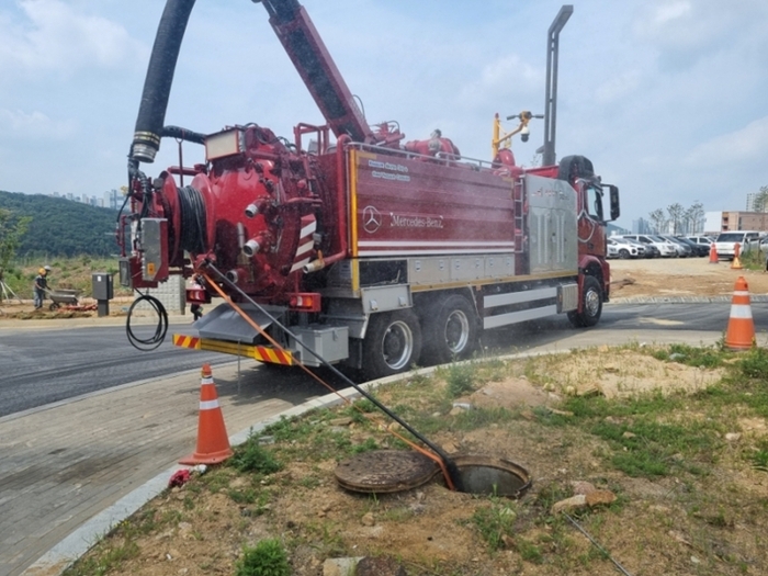 다임러 트럭 코리아와 광림특장의 협업으로 완성한 아록스 3346 준설차는 까다로운 현장에 투입돼 우수한 작업 안정성과 효율성을 입증하고 있다.