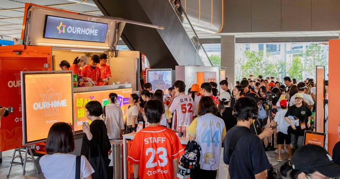 ‘아워홈런’ 이벤트 전경. [사진 출처 = 아워홈] 한화그룹 계열사로 편입된 아워홈이 프로야구단 한화이글스와 2025 시즌 연간 스폰서십 협약을 체결하고 이를 기념해 대규모 이벤트를 열었다고 3일 밝혔다.