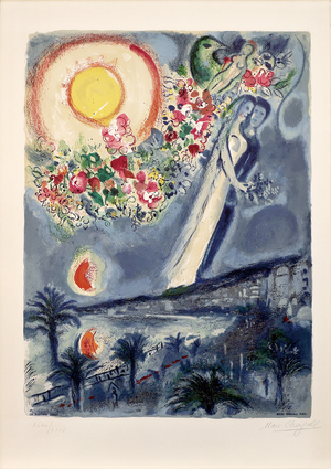 ↑ (Marc Chagall,Fiances dans le ciel de Nice,1967,Lithographs printed in colours. © Chagall ®,by SIAE 2025.)샤갈 특별전 하이라이트 섹션은?