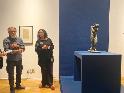 아르만도 피톨리리(좌) 보존전문가와,시모나 바를톨레나(우) 큐레이터가 로댕의 조각 작품 ‘이브’ 앞에서 설명을 하고 있다(사진 이승연 기자). [요하네스버그 아트 갤러리]