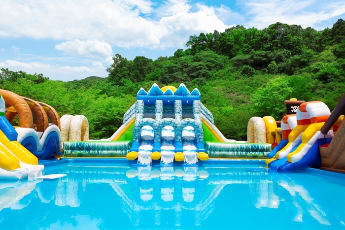 야외 수영장 에어 바운스 / 사진=오크밸리 강원도 원주에 자리한 복합 리조트 오크밸리가 본격적인 여름 휴가철을 앞두고 물놀이 시설과 체험 콘텐츠를 선보인다. 숲과 어우러진 자연 속에서 즐기는 휴식과 다양한 놀이 시설은 온 가족이 함께 떠나는 힐링형 바캉스에 알맞다.