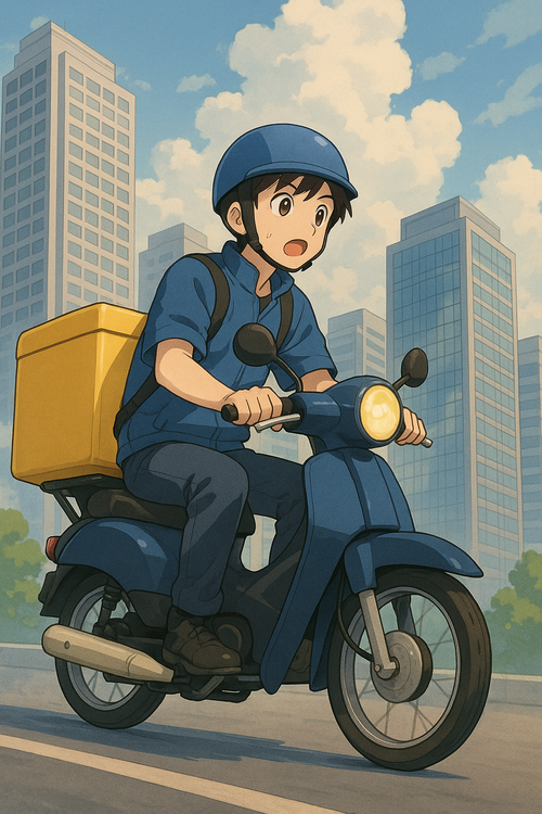 오토바이를 타고 음식을 배달하는 사람을 주제로 생성형 AI가 제작한 이미지 [챗GPT]