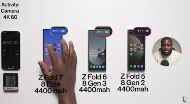 최근 IT유튜브 채널 러버 오브 테크(Lover Of Tech)는 갤럭시Z폴드의 성능 테스트 영상을 게재했다. 해당 영상에서는 갤럭시 Z폴드5,Z폴드6와 함께 최신 Z폴드7의 배터리 성능을 동일한 조건에서 직접 비교해 눈길을 끌었다.