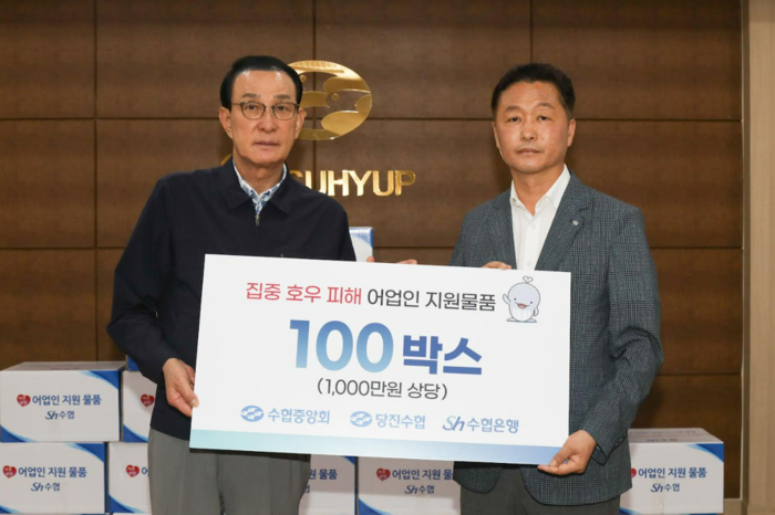 앞서 노동진 회장은 당진수협을 먼저 찾아 피해 현황을 청취한 뒤 피해 어업인에게 1000만 원 상당의 위로 물품을 전달하기도 했다. 노 회장은 “앞으로도 기후 위기에 따른 자연재해에 선제적으로 대응하고,어업인이 체감할 수 있는 실질적 대책을 마련해 나가겠다”고 말했다.
